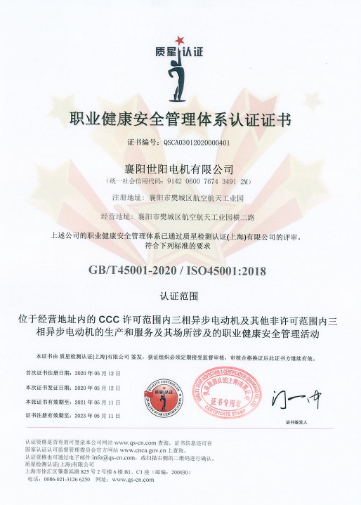 職業健康安全管理體系認證證書